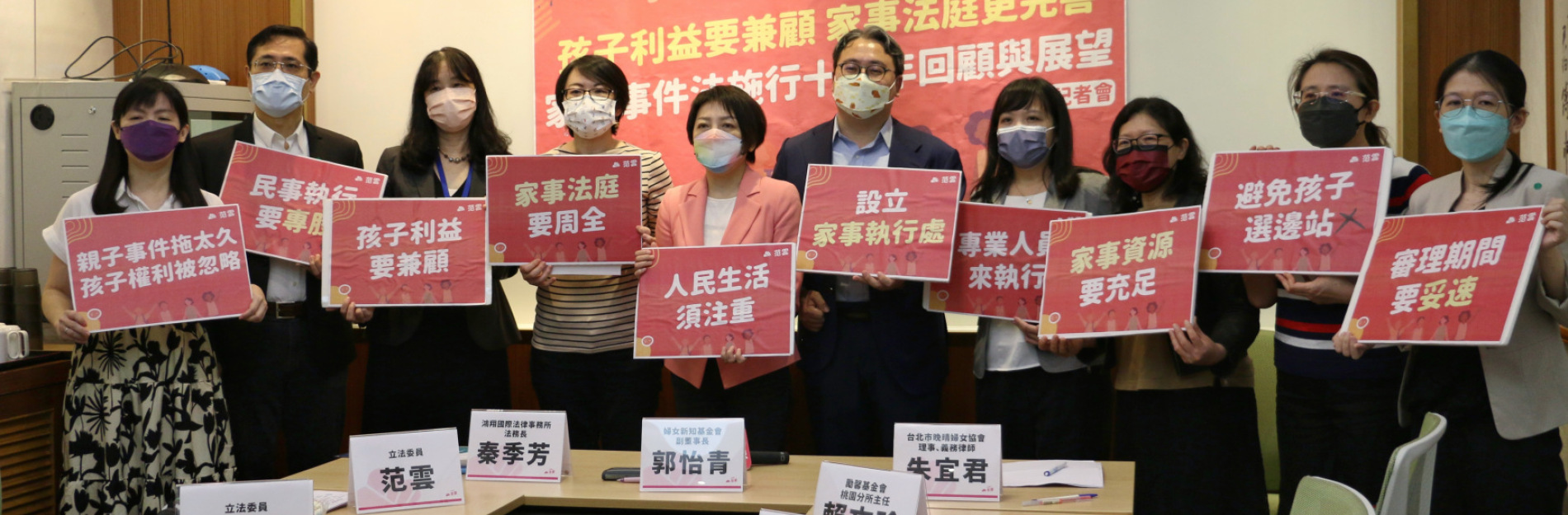 在家事事件法施行十週年之際,婦女新知基金會及台北市晚晴婦女協會邀請現代婦女基金會、勵馨基金會、兒童福利聯盟文教基金會等提供民眾與家事相關的法律、社會心理等服務的民間團體共同發聲,以及關注兒童福利、家事議題的范雲、江永昌、黃世杰等立法委員一同出席記者會,提出基層民眾、家事法官、家事調查官等專業人員第一線服務所面臨的問題,期盼司法院能聽見民眾及司法從業人員的心聲,於家事事件法十週年重新體檢程序法上未周全之處。