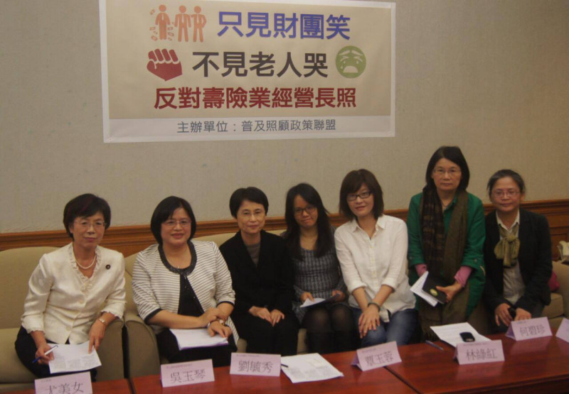 壽險業者為確保獲利,甚至可能施壓政府,要求放寬價格收費及服務品質相關法規,導致需要照顧的民眾,不是財務負擔沈重,就是必須忍受惡劣的照顧品質。一旦民眾所需的長照服務,因壽險業龐大資金介入,被分成「高級服務」與「低級服務」兩端,社會不公只會隨高齡化日益擴大,基層勞工、女性、原住民及各弱勢族群的老年生活首當其衝。而壓低勞動成本的結果,也將難以留住長期照顧人才,人力短缺的問題無法改善。